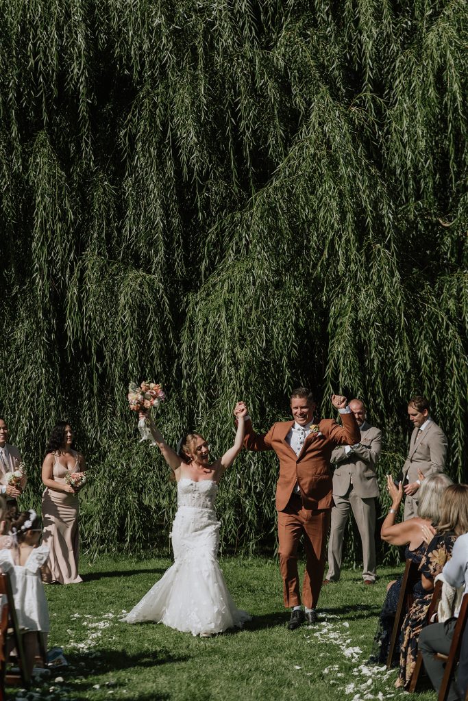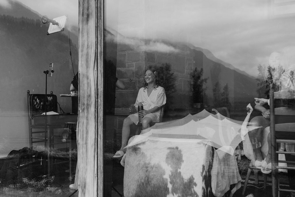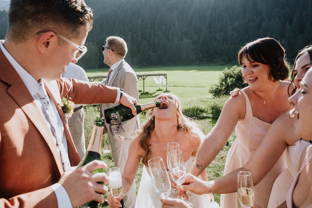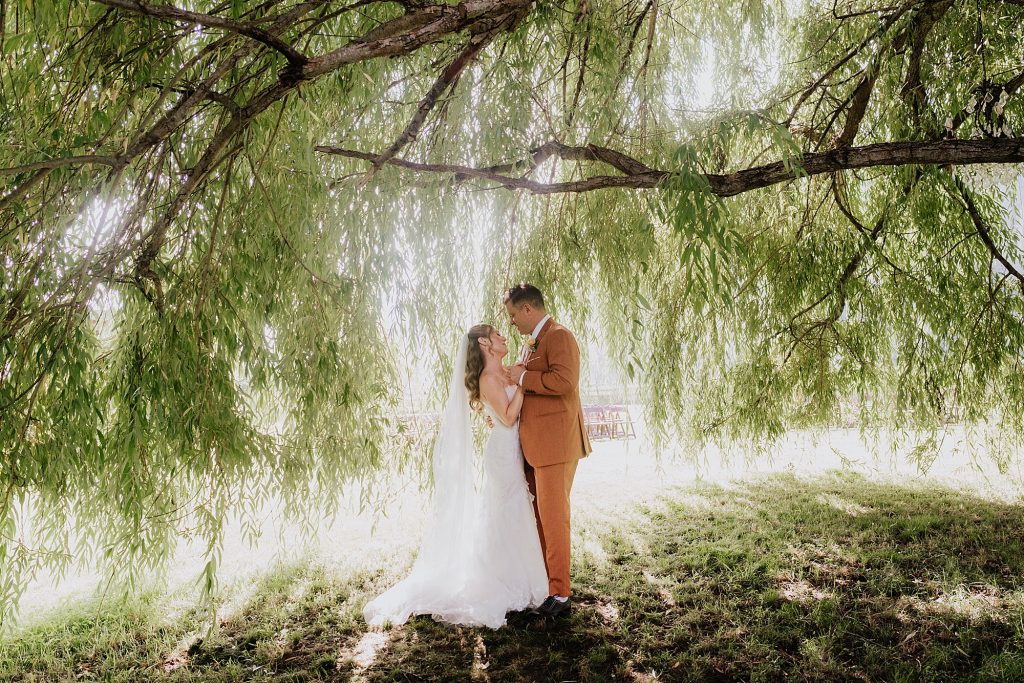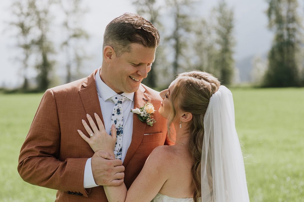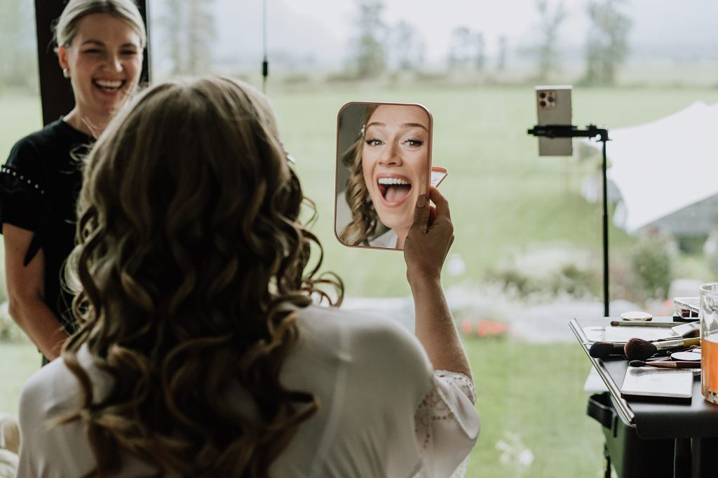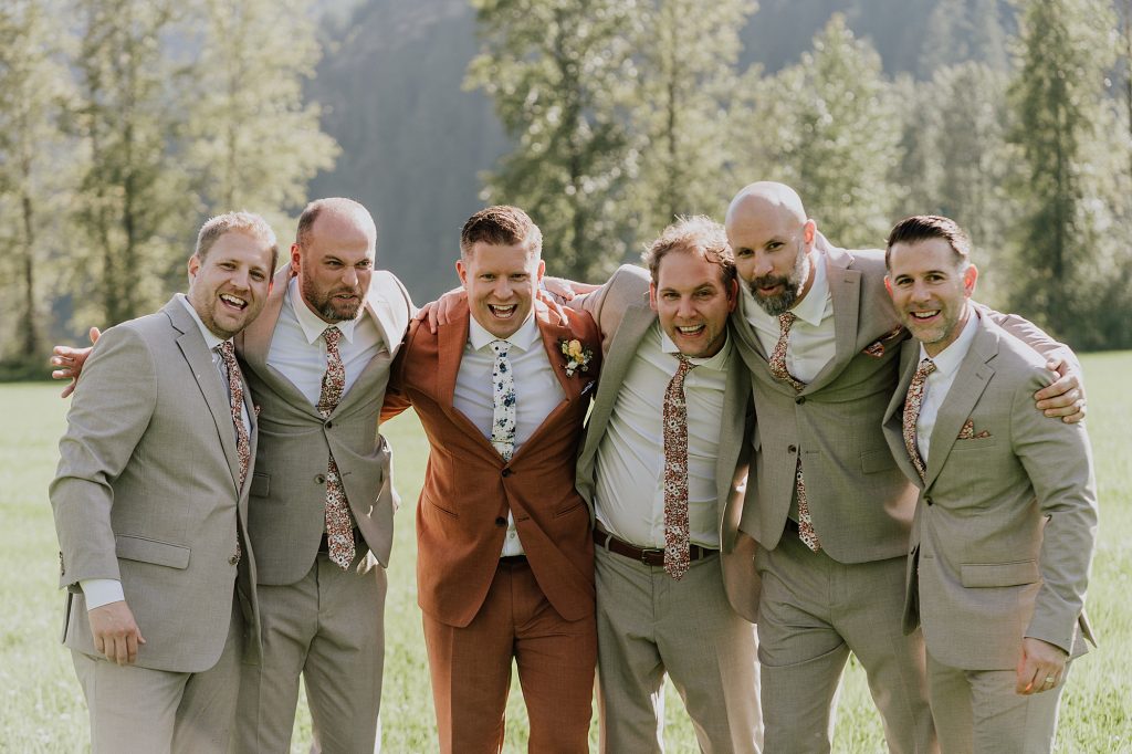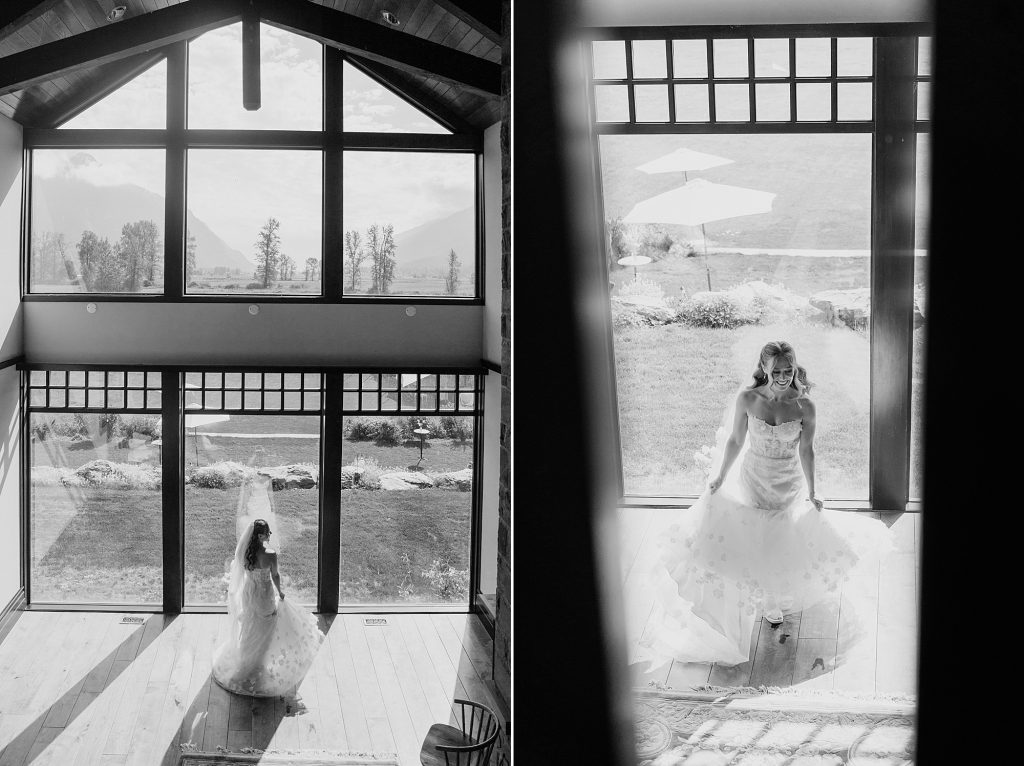 The wedding took place at a stunning executive home in Pemberton Meadows. Surrounded by forest, mountains, and open skies, the property offered the perfect balance of intimacy and space for celebration. A willow tree stood as a natural backdrop for the ceremony, while the house itself allowed the couple and their wedding parties to get ready in separate rooms but still mingle and hang out — a photographer’s dream.