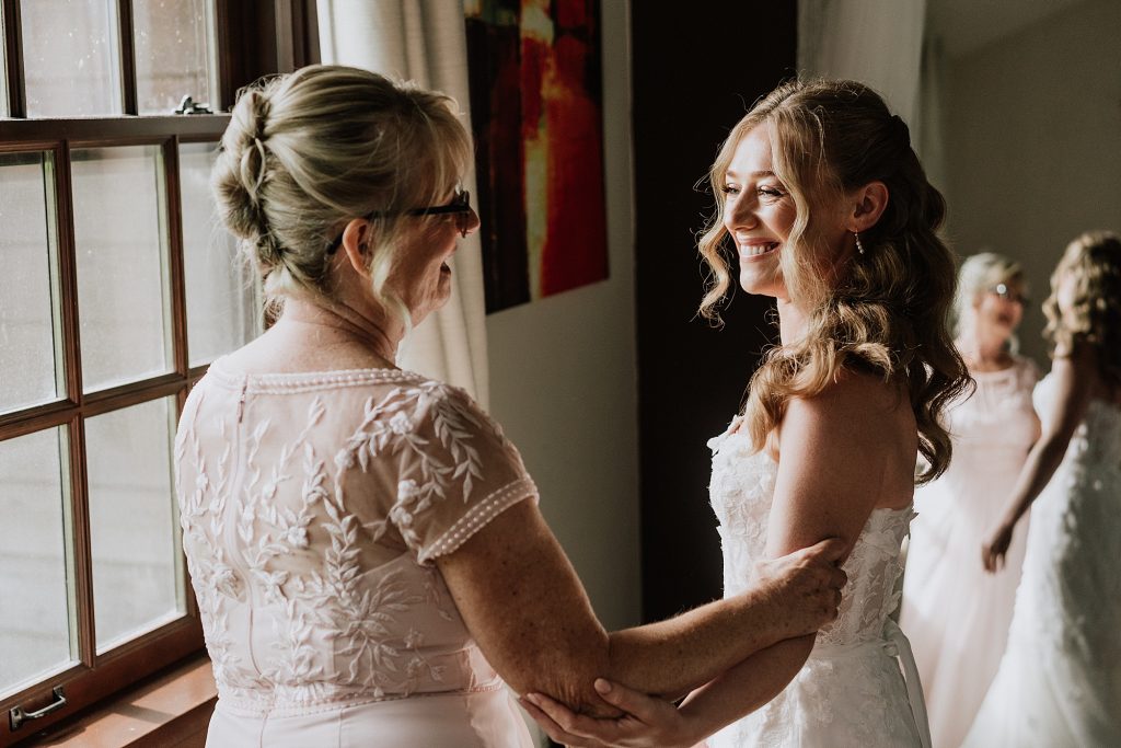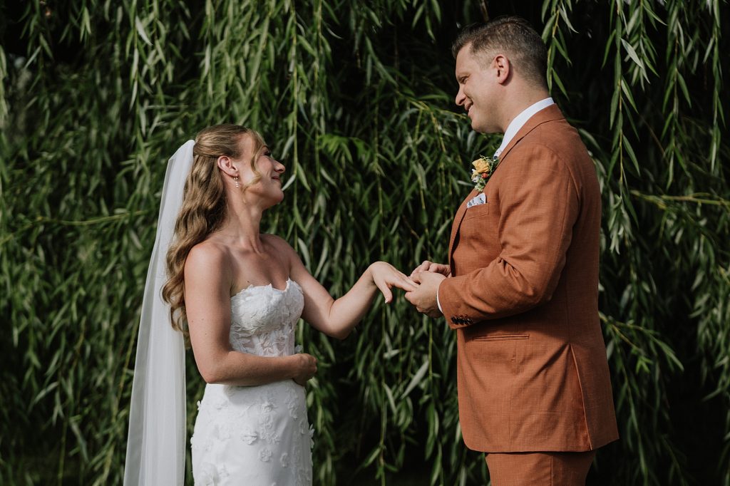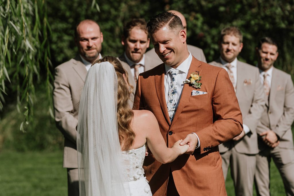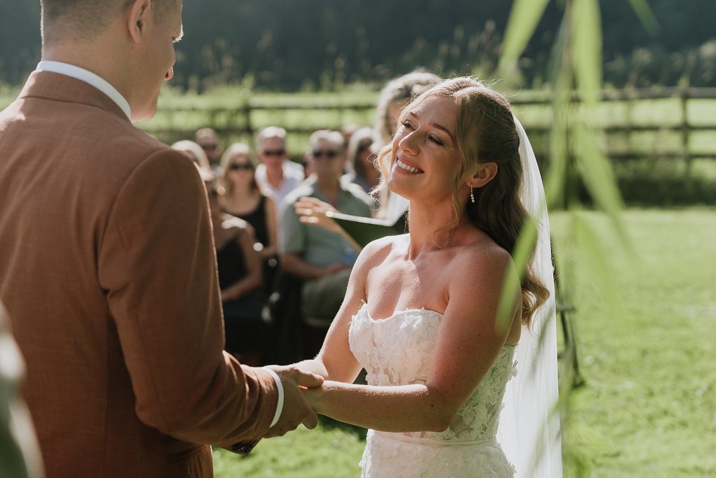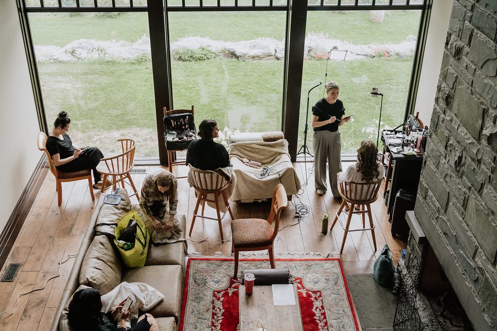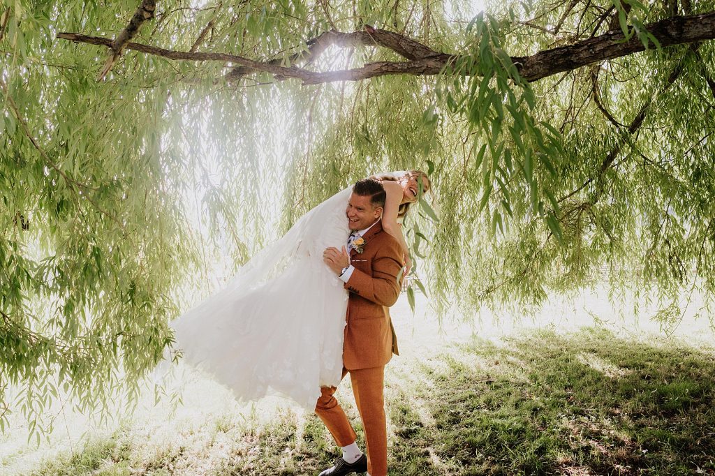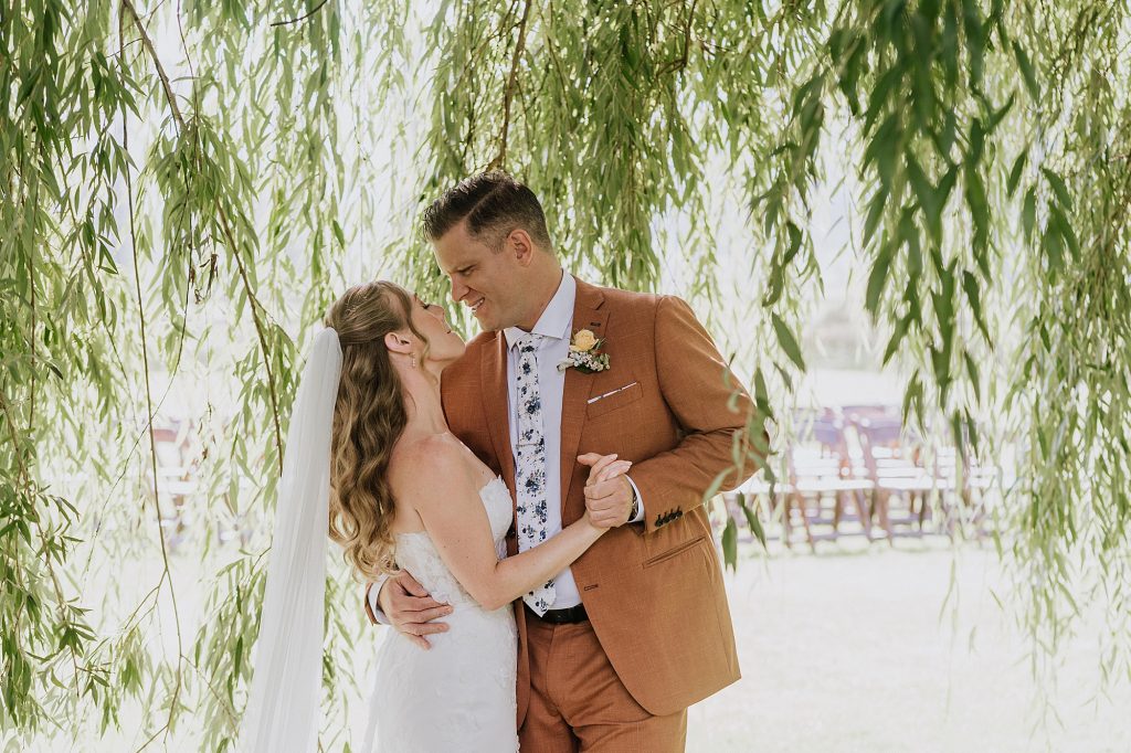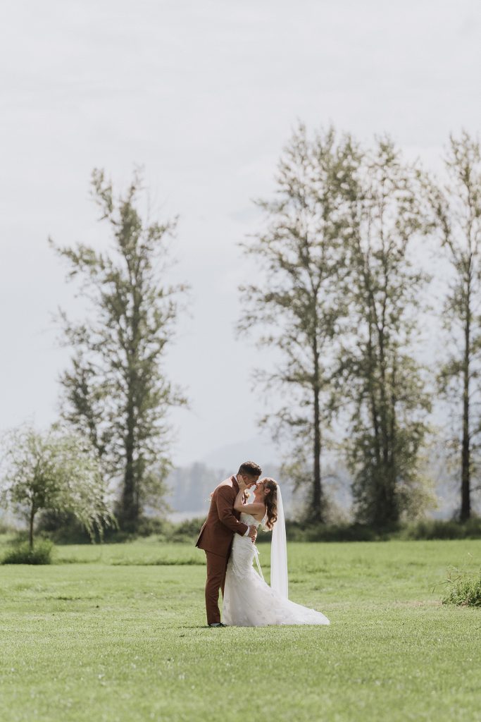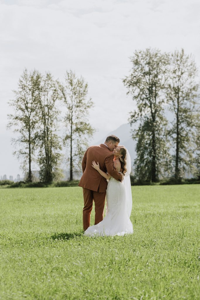 The wedding took place at a stunning executive home in Pemberton Meadows. Surrounded by forest, mountains, and open skies, the property offered the perfect balance of intimacy and space for celebration. A willow tree stood as a natural backdrop for the ceremony, while the house itself allowed the couple and their wedding parties to get ready in separate rooms but still mingle and hang out — a photographer’s dream.