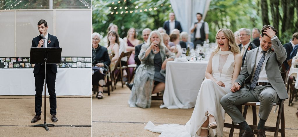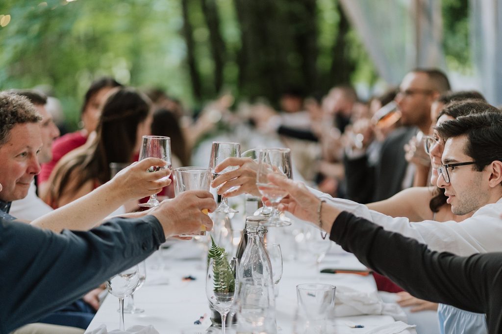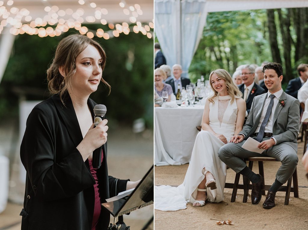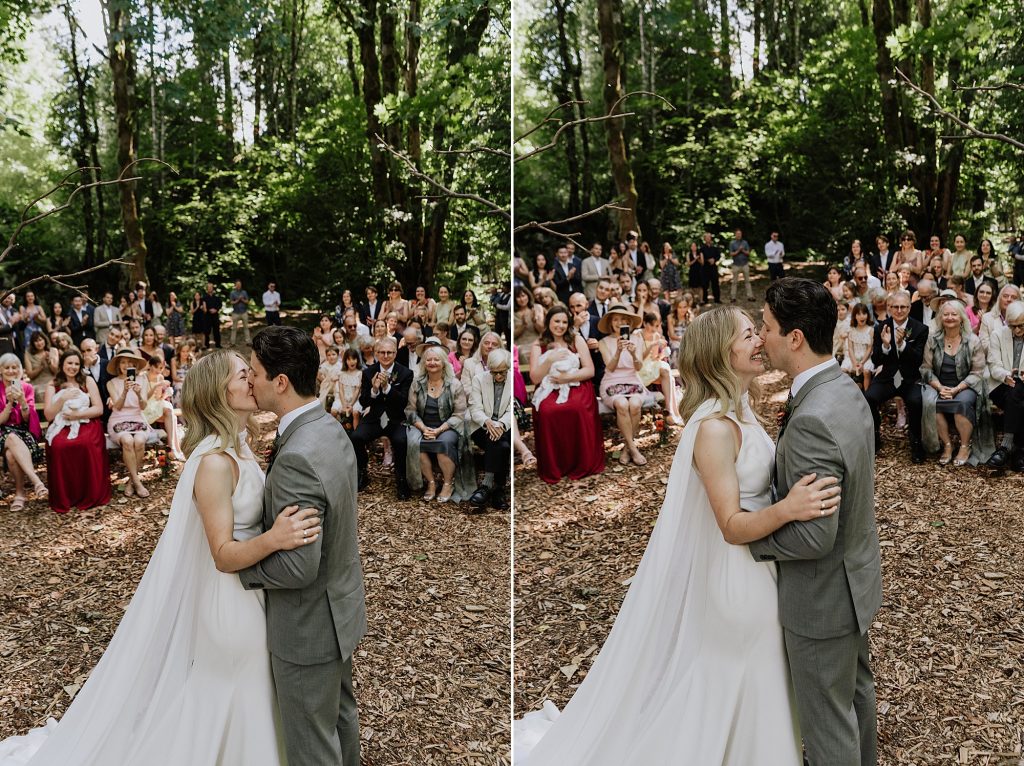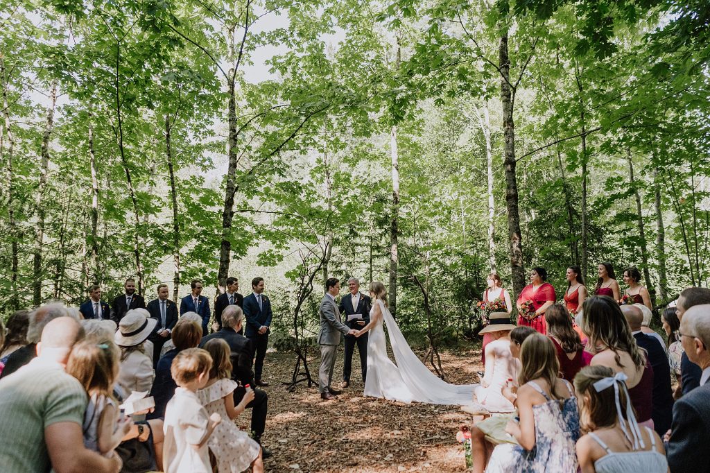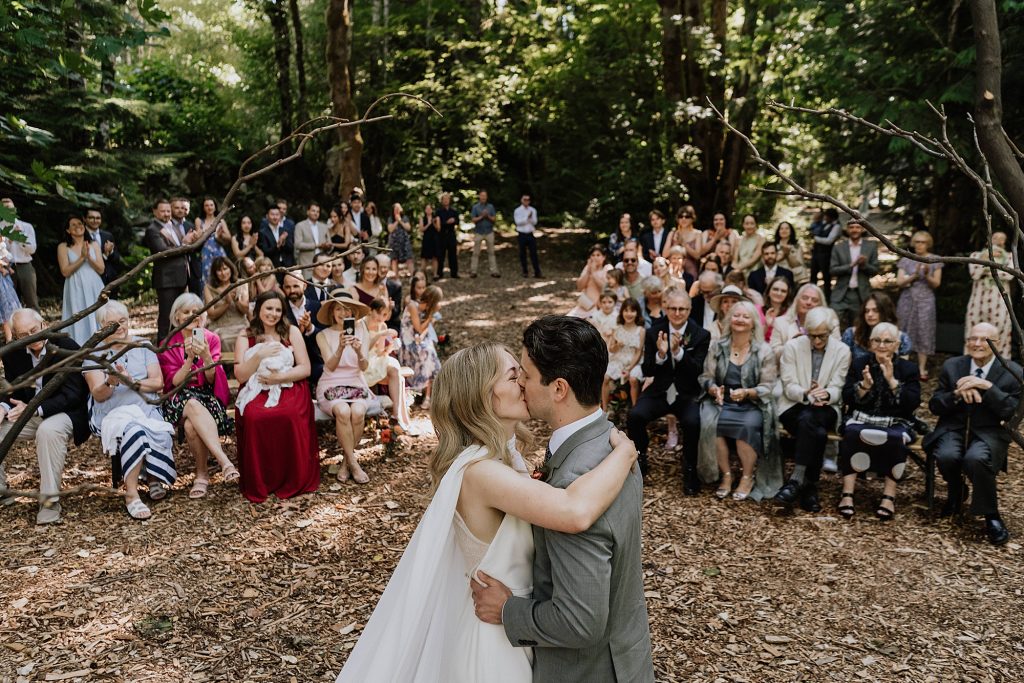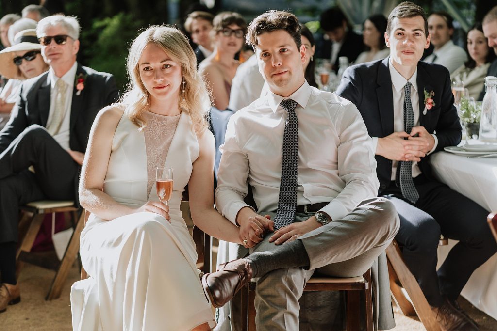 The ceremony took place overlooking the river — one of Sunwolf’s most iconic features. Surrounded by trees, flowing water, and their closest friends and family, Frances and Jonathan exchanged vows filled with warmth, humour, and genuine emotion.