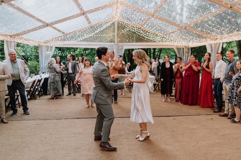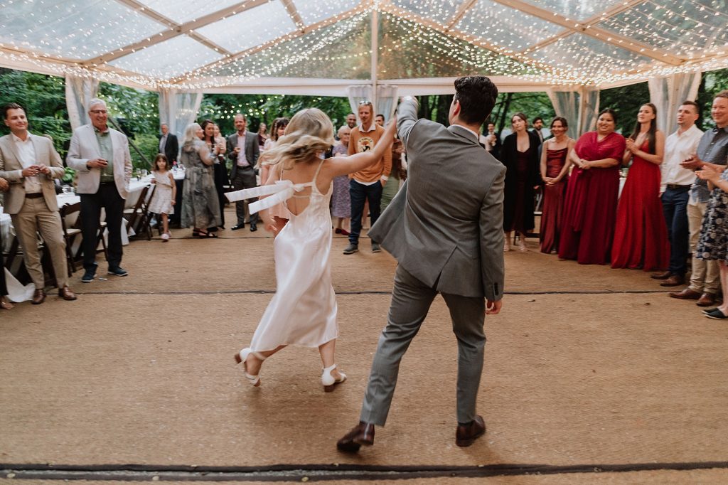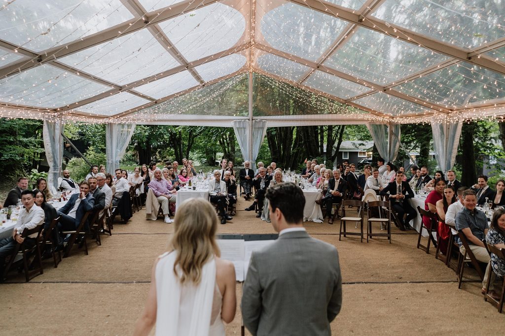 Following the ceremony, guests moved into cocktail hour before settling into dinner and dancing under the tent. Sunwolf’s setup creates a natural progression from one part of the day to the next, keeping people engaged without ever feeling rushed.